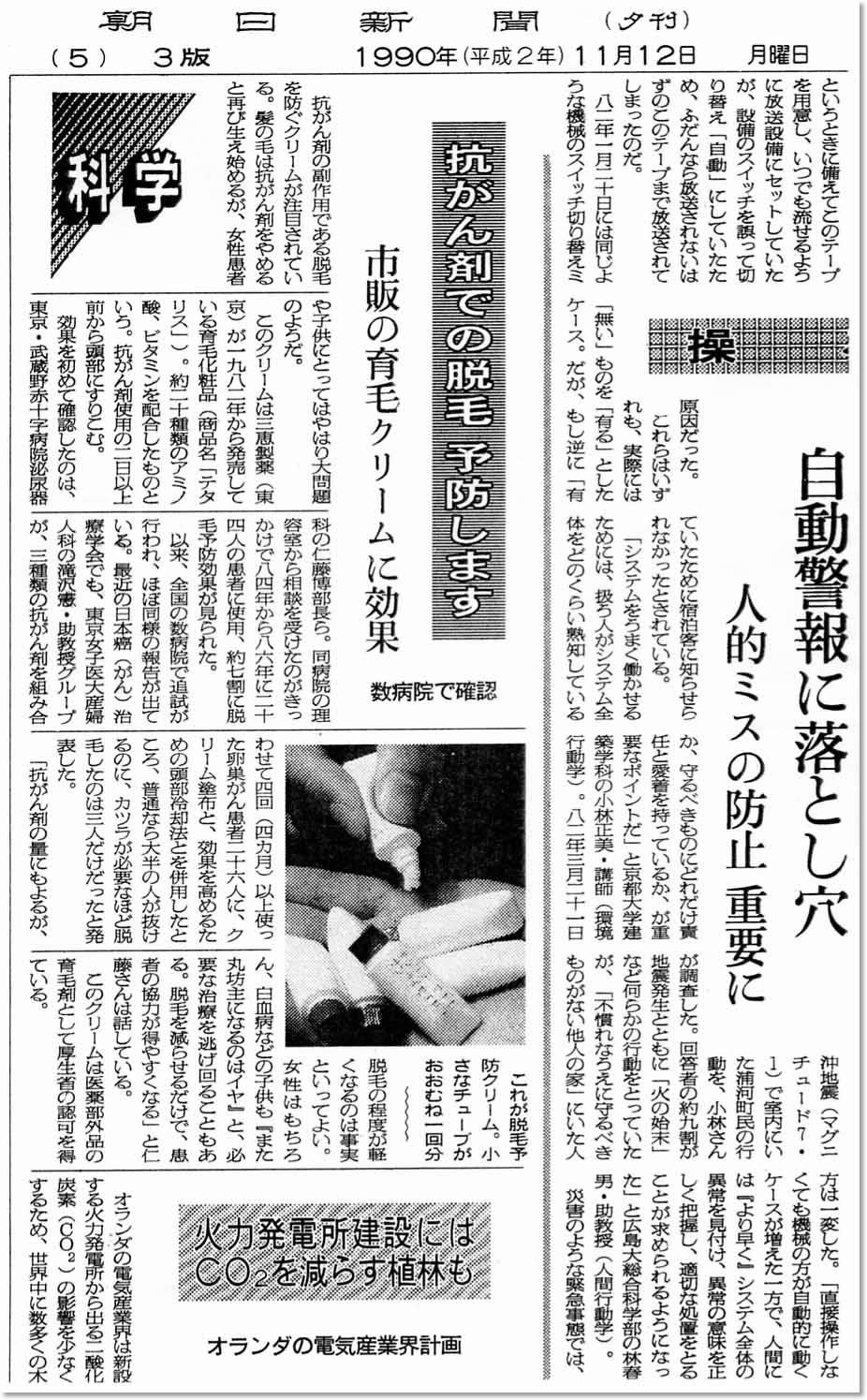 1990年(平成2年)11月12日(月曜日)夕刊 「朝日新聞」